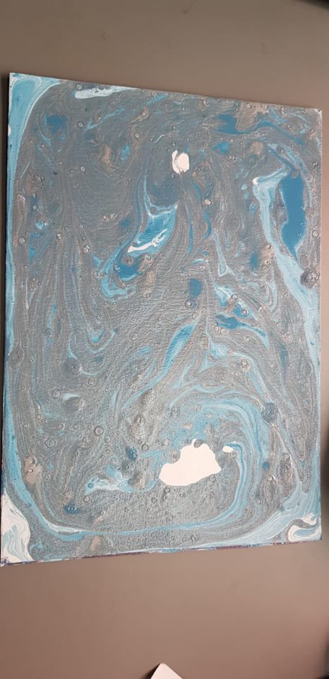 Since we don't have much marbling ink, I used gloss paint instead. Thanks to our senior for giving us the free gloss paints šš».